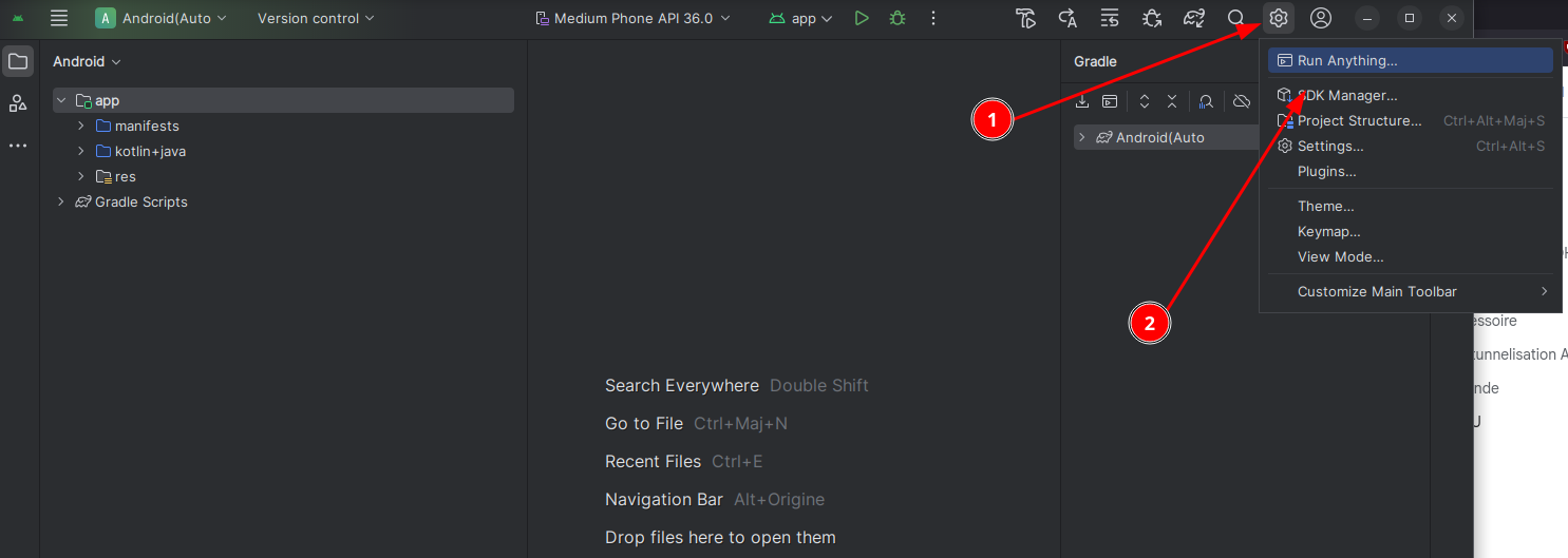 echo "Ordinateur, ouvrir 'Android studio' sur le projet 'Android auto'"