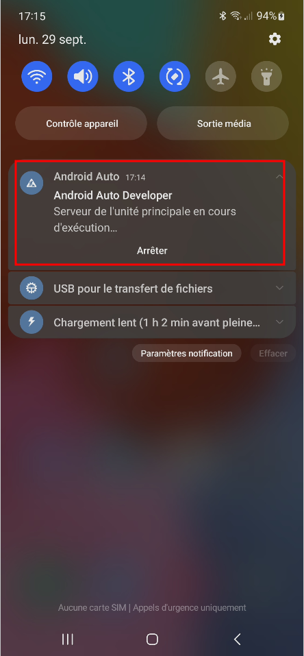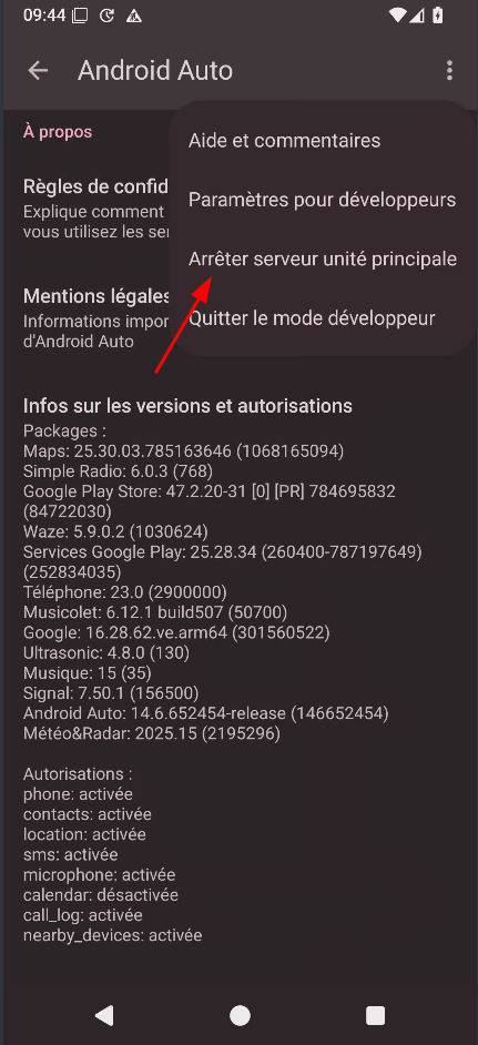 Activez le mode développeur d’Android Auto si ce n’est pas déjà fait.