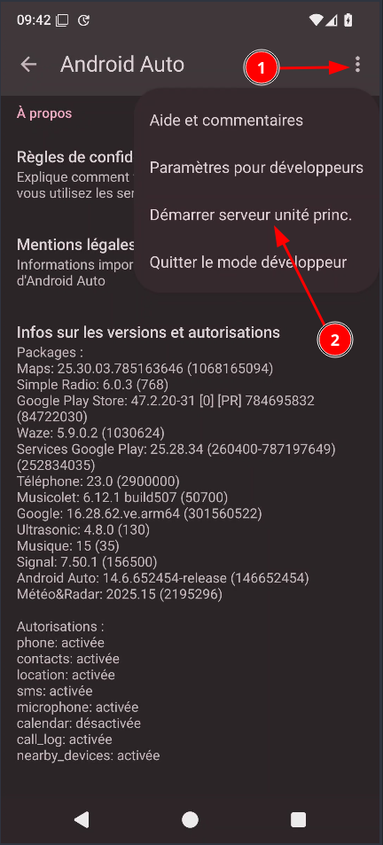 Activez le mode développeur d’Android Auto si ce n’est pas déjà fait.