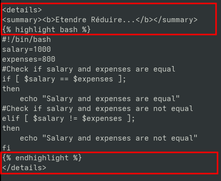 Pour un language spécifique (shell, bash, python, css, scss, etc…), ajouter le à la suite de highlight