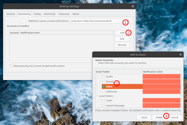 Pour ce faire, ouvrez Birdtray, passez à l’onglet Surveillance et sélectionnez à l’ using Mork index files sous Method to parse unread notifications . Ensuite, cliquez sur Add :