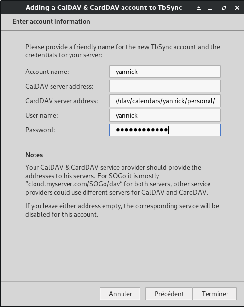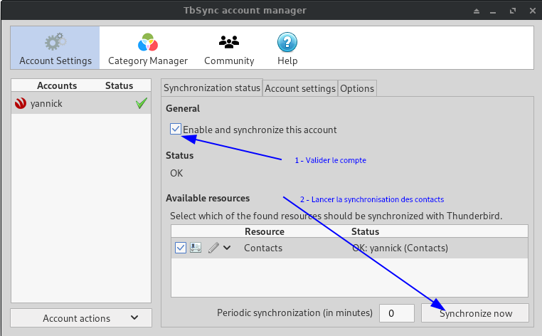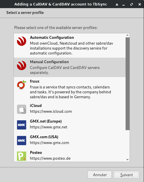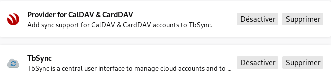 Remplacement de cardbook , on va installer les modules “tbSync” et “Provider caldav carddav”