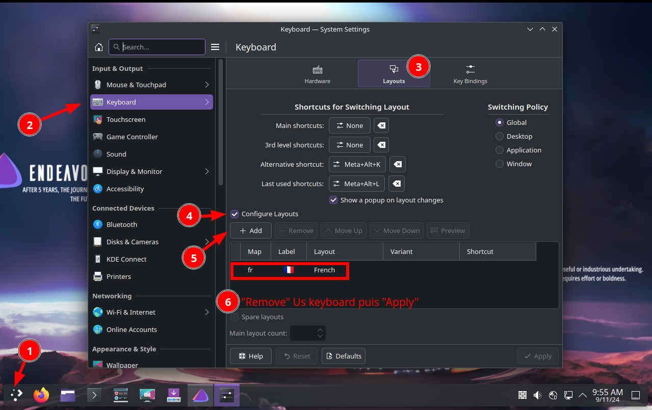 Insérer la clé USB EndeavourOS, redémarrer la machine, sur Eos live