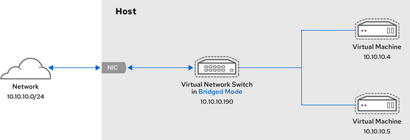 - Un réseau de zone démilitarisée (DMZ). Pour un déploiement DMZ avec des machines virtuelles, Red Hat recommande de configurer la DMZ au niveau du routeur et des commutateurs du réseau physique, et de connecter les machines virtuelles au réseau physique en utilisant le mode ponté.
