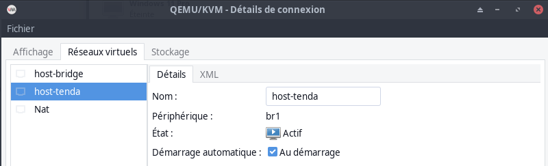 sudo virsh net-autostart host-tenda # -> Réseau host-tenda marqué en démarrage automatique