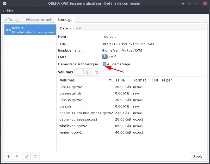 Ajoutez votre compte utilisateur au groupe libvirt.
