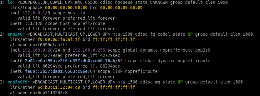2: enp2s0: <BROADCAST,MULTICAST,UP,LOWER_UP> mtu 1500 qdisc fq_codel state UP mode DEFAULT group default qlen 1000