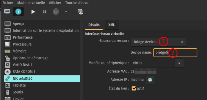 Ajouter un pont vers une interface réseau :