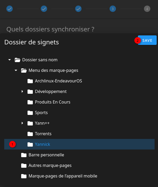 De retour sur le paramétrage de l’extension, cette dernière souhaite savoir, dans quel dossier nous allons synchroniser les favoris