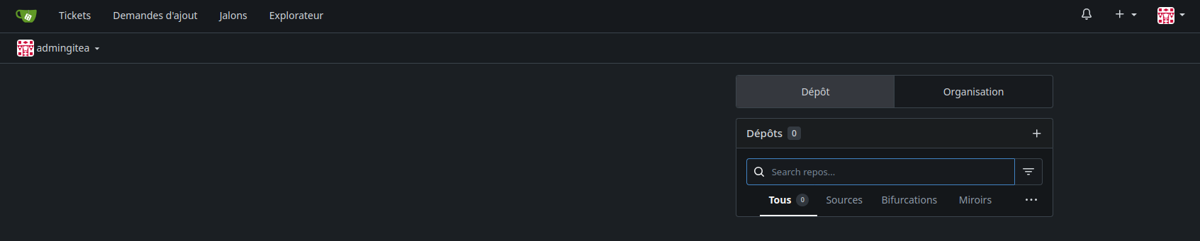 - Connectez-vous à Gitea en utilisant votre compte personnel, comme décrit dans Gitea.