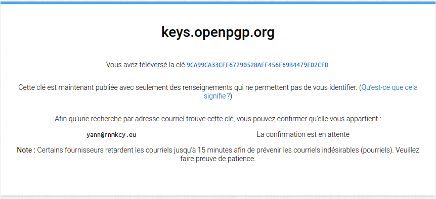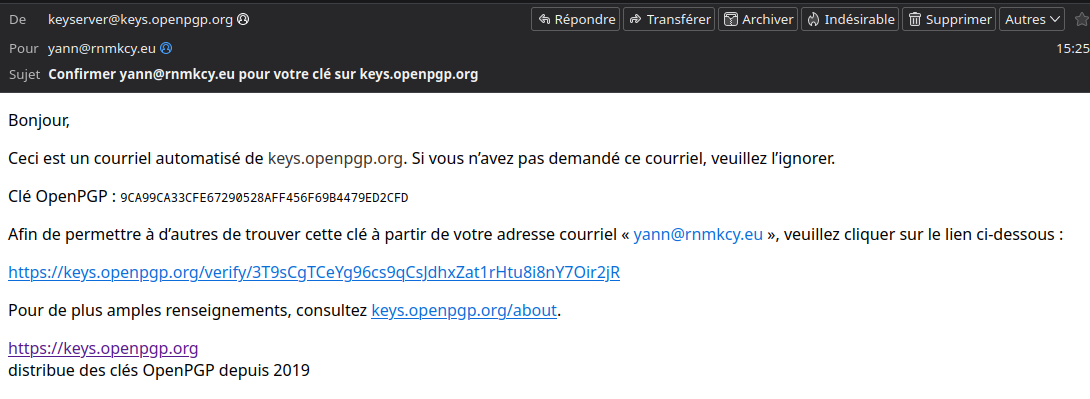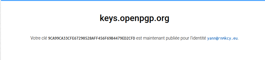 URL pour récupérer la clef publique : https://keys.openpgp.org/search?q=yann@rnmkcy.eu