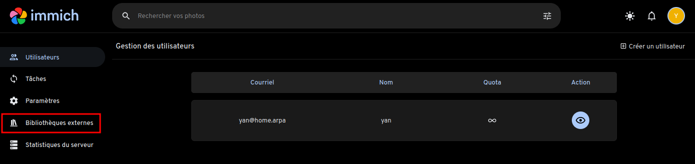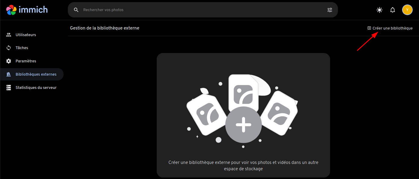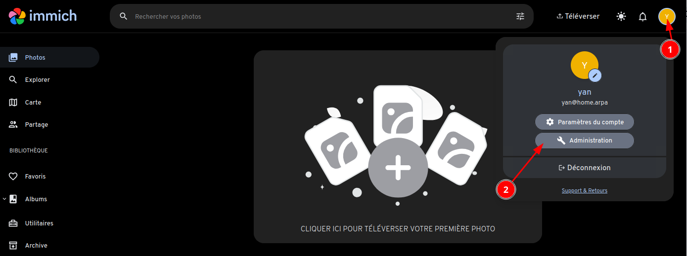 immich - Gestionnaire web photos et vidéos installé sur une machine virtuelle Alpine Linux