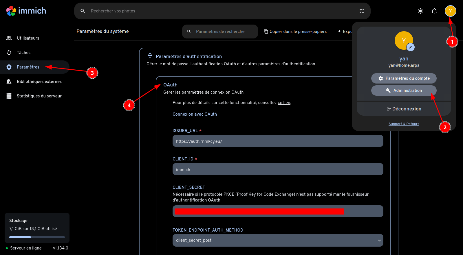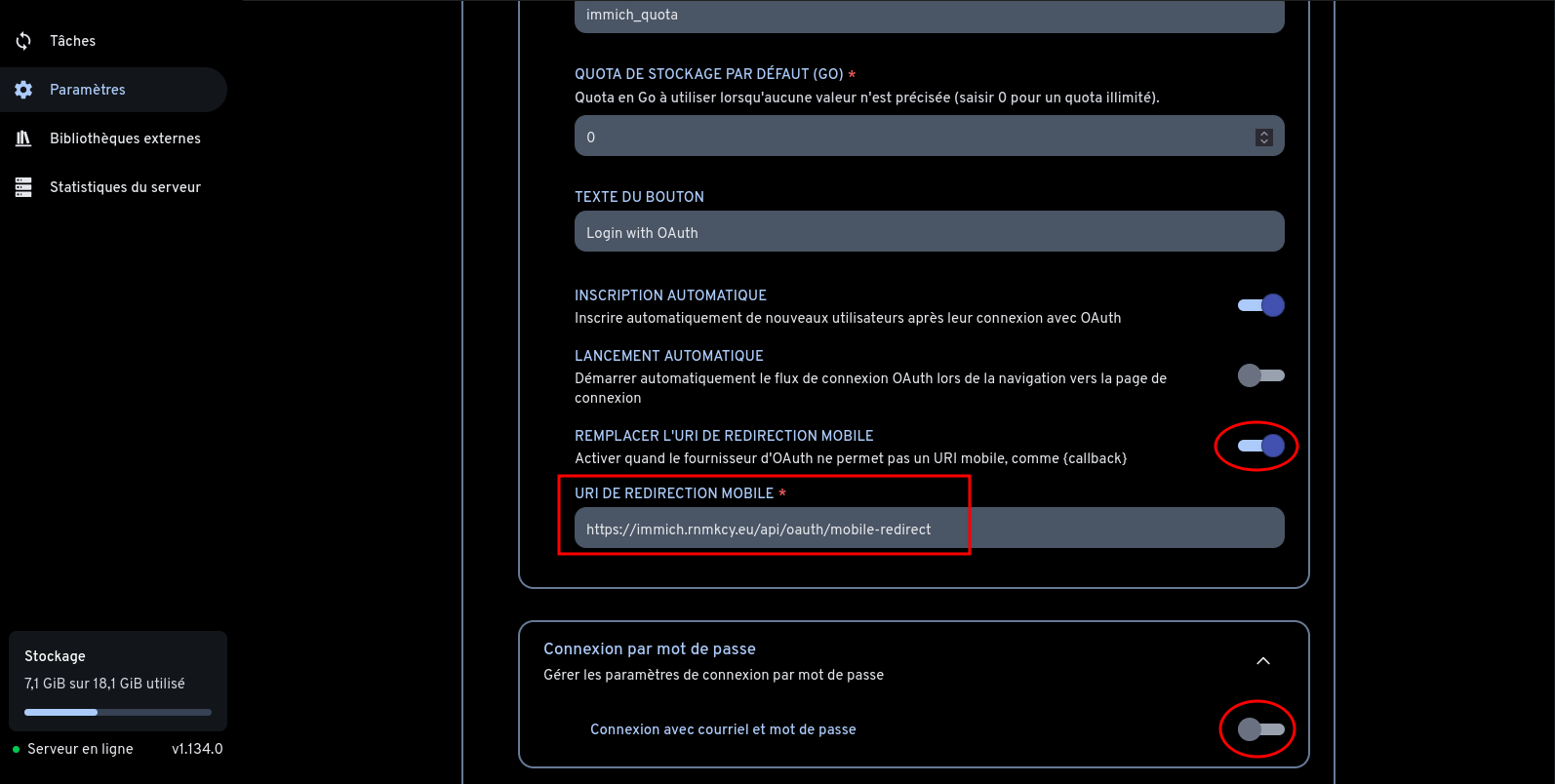 - MOBILE REDIRECT URI OVERRIDE: doit être activé pour prendre en charge les redirections appropriées depuis la connexion du navigateur Authelia vers l’application mobile Immich.