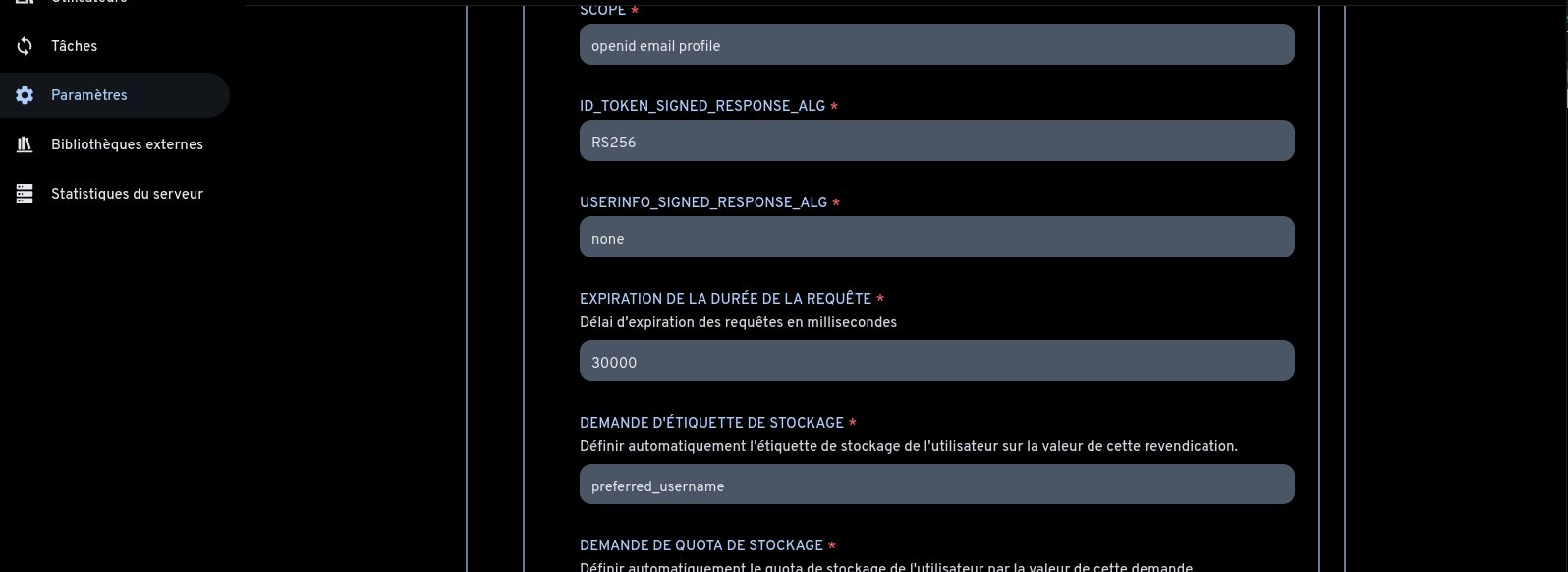 - AUTO LAUNCH: Démarrage automatique du flux d’authentification OAuth/OIDC. Si cette option est activée, l’option d’authentification locale avec nom d’utilisateur et mot de passe ne sera plus disponible.
