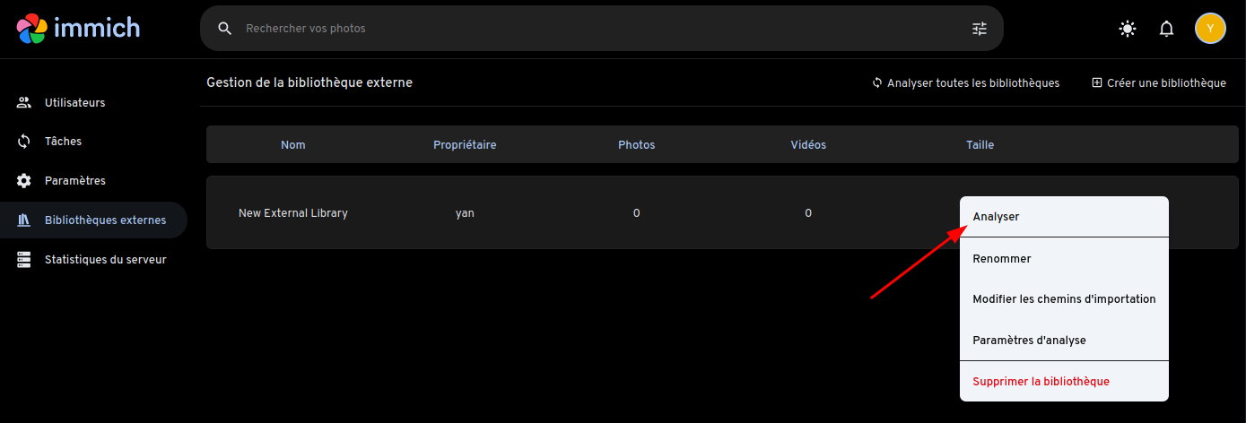 immich - Gestionnaire web photos et vidéos installé sur une machine virtuelle Alpine Linux