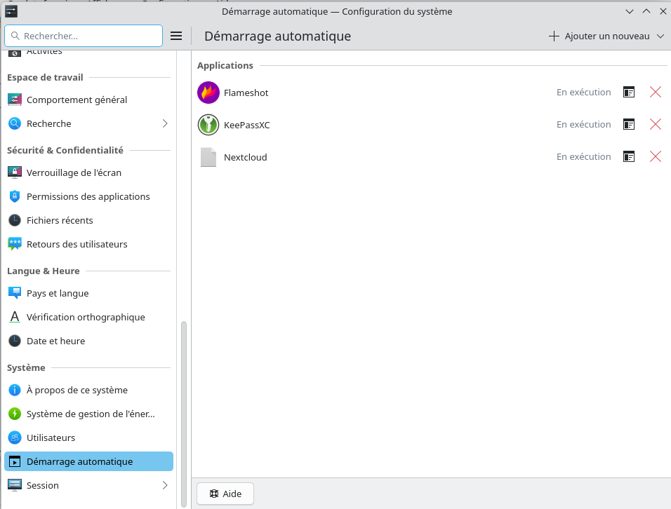 Configuration du système –> Démarrage automatique