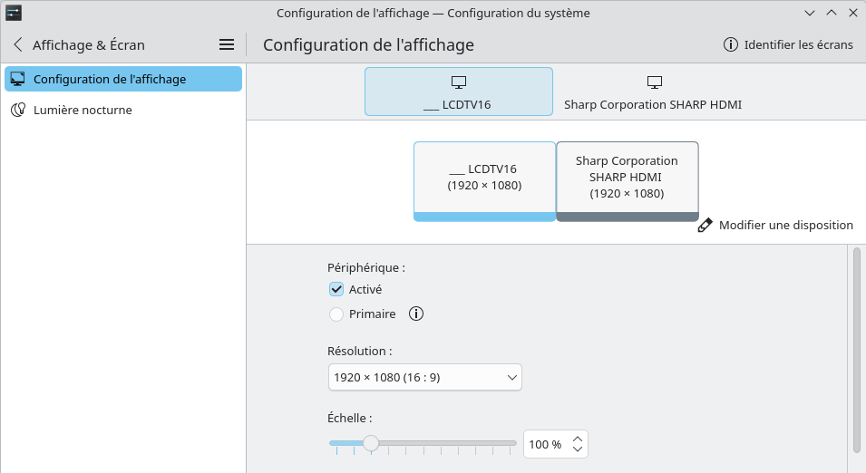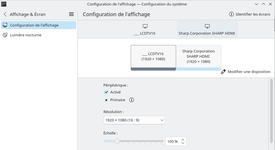 Forcer écran 0 (écran droit HDMI) ou 1 (écran gauche LCD)