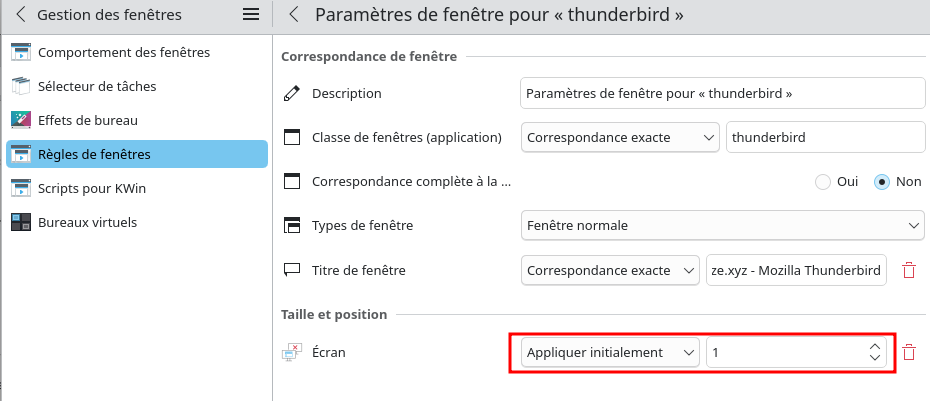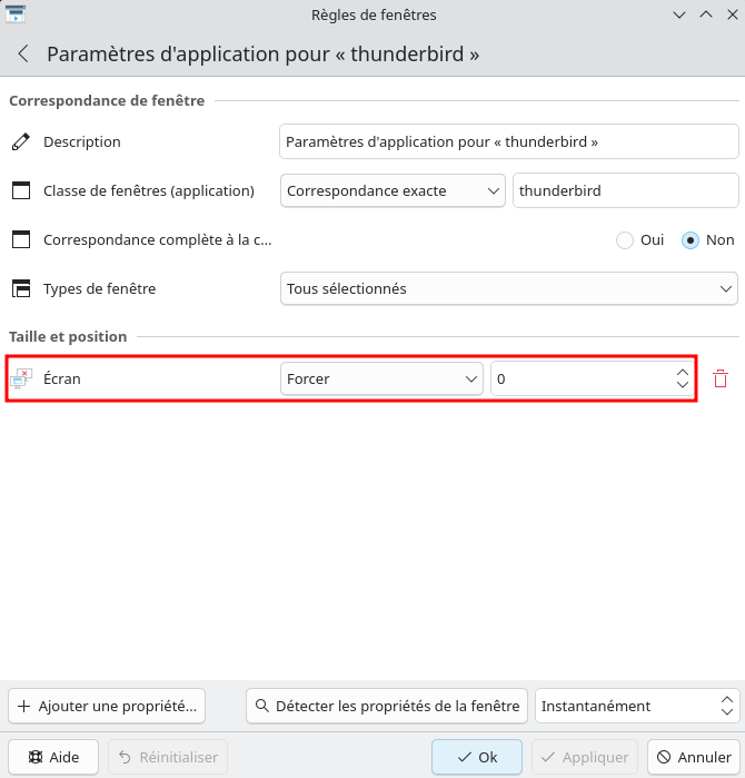 Modifier l’application thunderbird pour qu’elle s’ouvre sur l’écran 0 HDMI