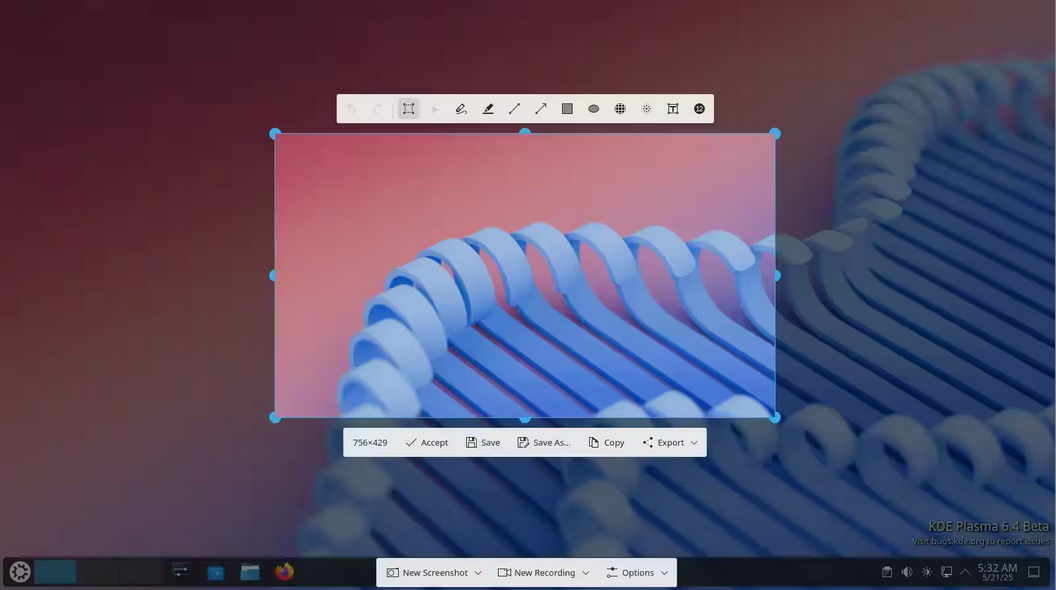 Dans la nouvelle version, l’outil de capture d’écran Spectacle (qui se lance soit à partir du menu, soit via le raccourci PrintScreen) s’ouvre maintenant directement en mode de sélection de zone d’écran.