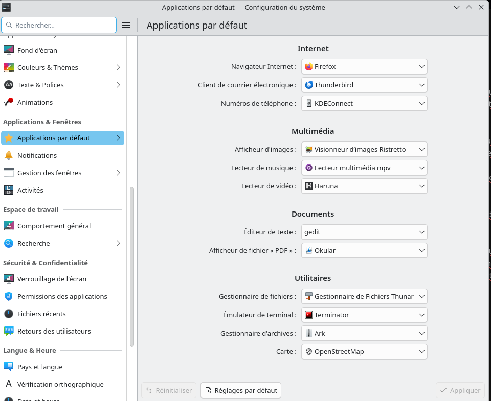 KDE Plasma devrait immédiatement prendre en compte vos nouvelles associations d’applications par défaut.