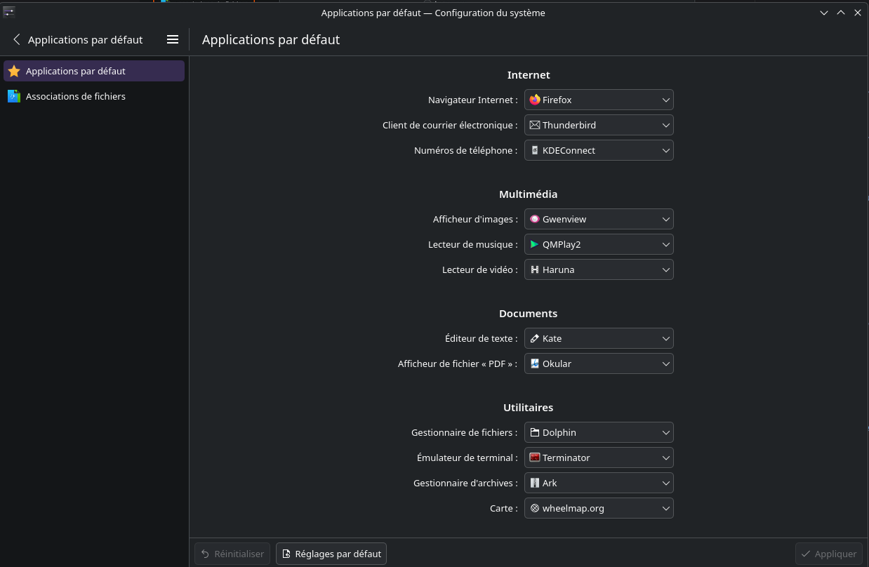 KDE Plasma devrait immédiatement prendre en compte vos nouvelles associations d’applications par défaut.