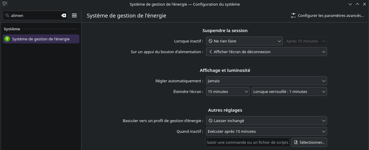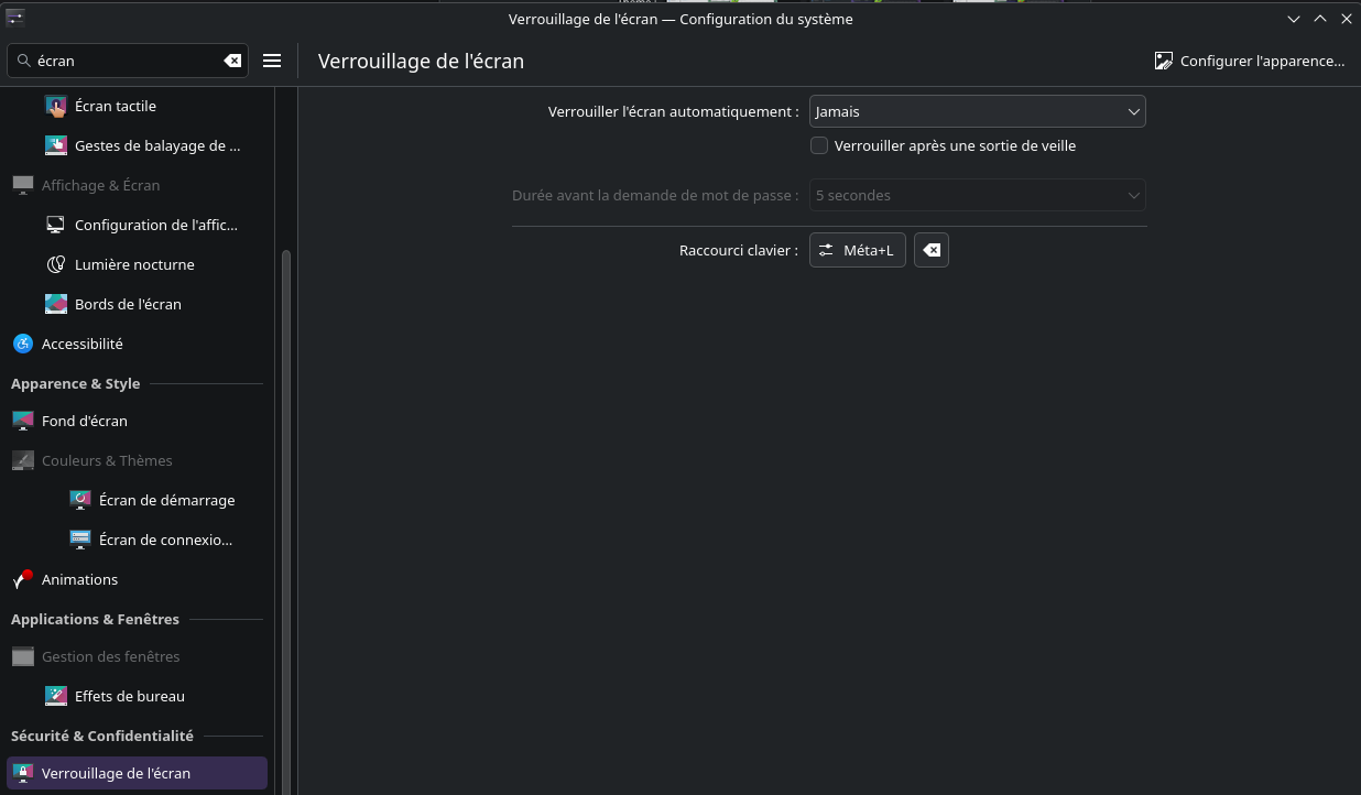 Système de gestion de l’énergie - Verrouillage de l’écran