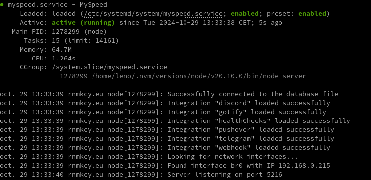 Si vous voulez que MySpeed démarre au démarrage de systemd