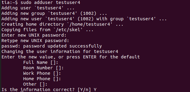 sudo adduser testuser
