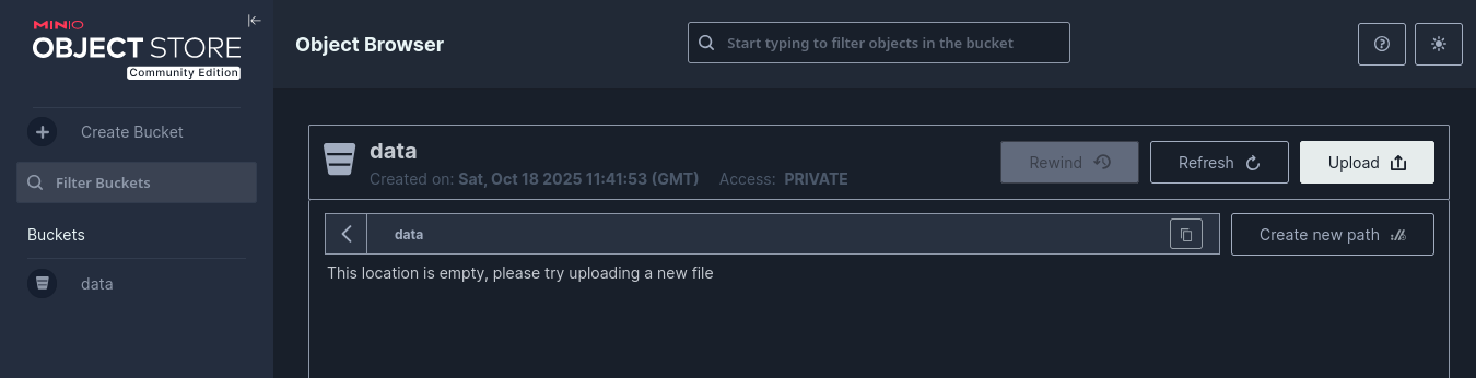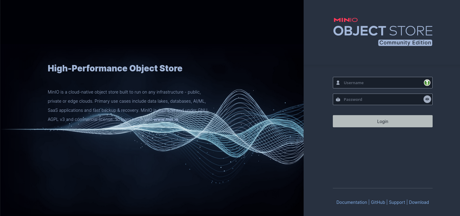Pour accéder à Minio, ouvrez votre navigateur et accédez à l’adresse http://<votre_ip>:9000 Utilisez les identifiants configurés (MINIO_ROOT_USER et MINIO_ROOT_PASSWORD) pour vous connecter.