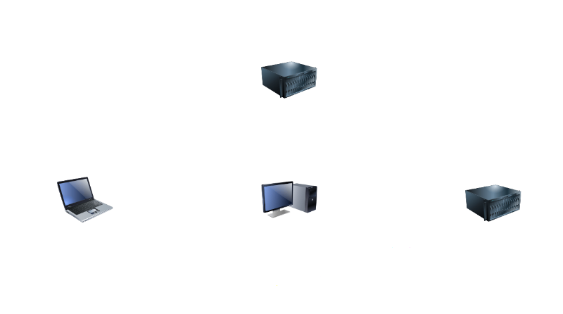 Clients, un ordinateur de bureau Arch, un portable laptop, serveur debian et un autre sur un téléphone Android