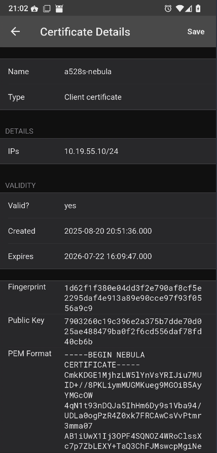 nebula-cert sign -name "pc1" -ip "10.19.55.2/24"