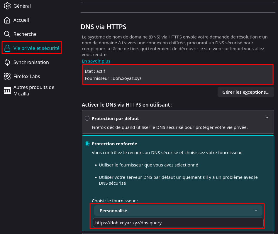 # Lancement avec DoH