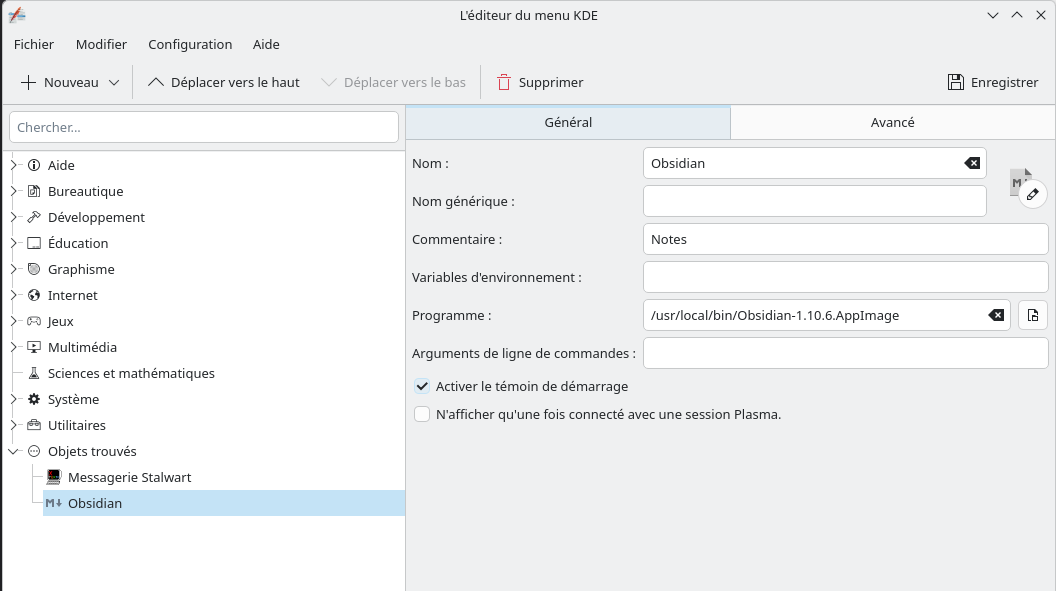 Créer un lanceur avec ‘Editeur du menu KDE’