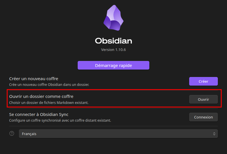 # Prérequis fuse2 installé chmod u+x Obsidian-<version>.AppImage ./Obsidian-<version>.AppImage --no-sandbox