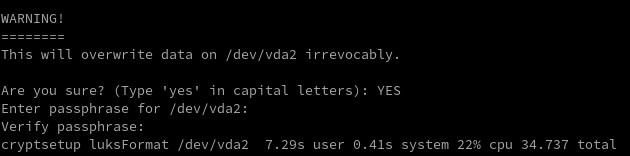 cryptsetup open --type luks /dev/vda2 cryptlvm # saisie du mot de passe