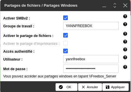 En Mode avancé dans la rubrique Partage de fichiers double-clic sur Partages Windows