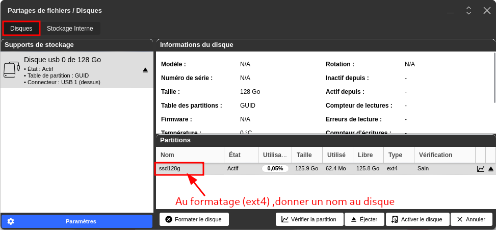 En Mode avancé dans la rubrique Partage de fichiers double-clic sur Disques