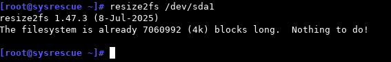 Si le système de fichiers est déjà étendu, vous verrez : Nothing to do!