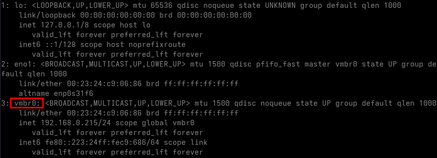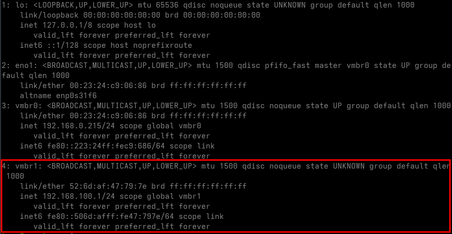 Le réseau vmbr0 existe, on va ajouter un nouveau pont vmbr1 pour notre réseau interne avec NAT.