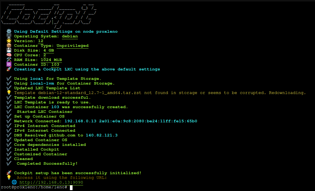 bash -c "$(curl -fsSL https://raw.githubusercontent.com/community-scripts/ProxmoxVE/main/ct/cockpit.sh)"