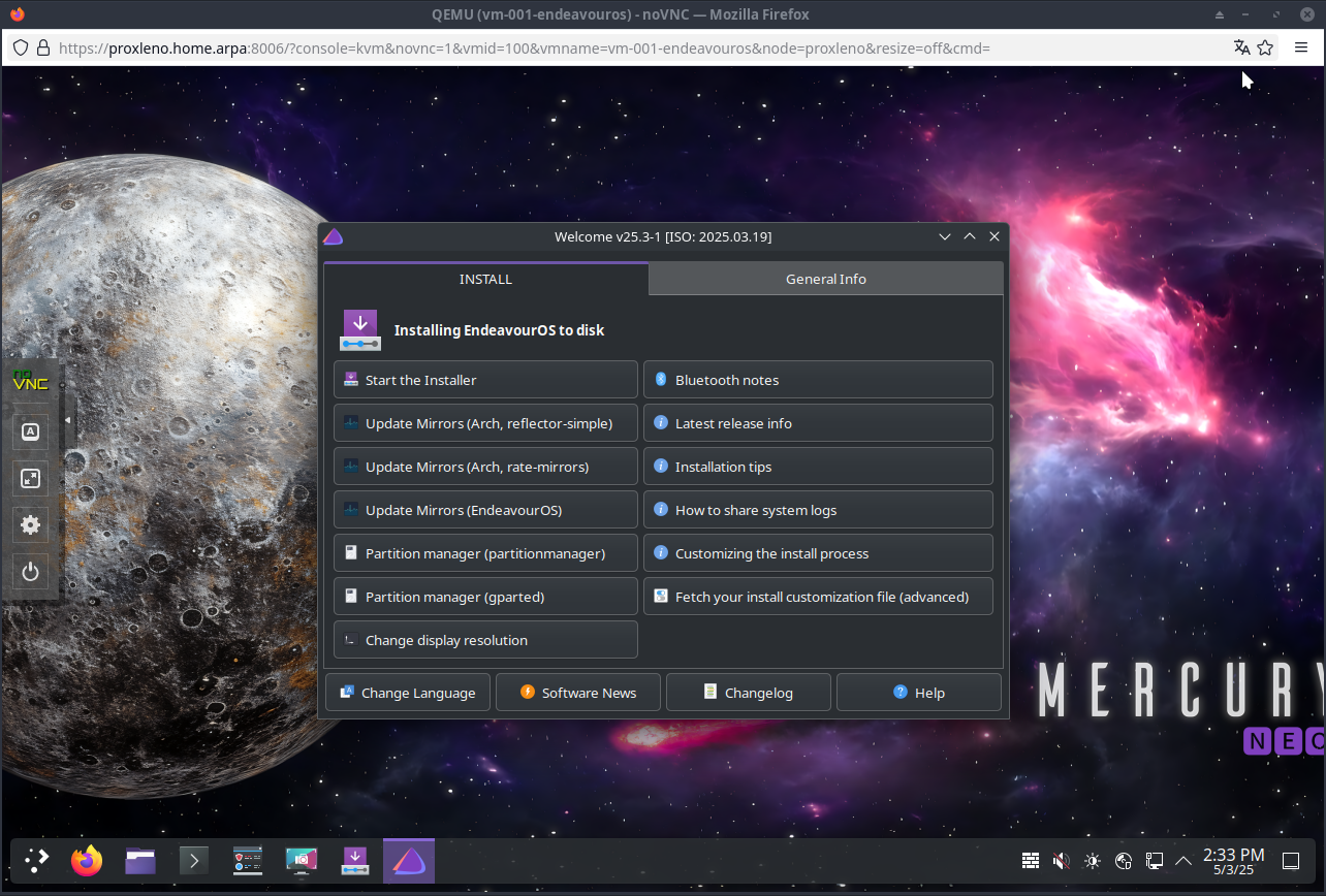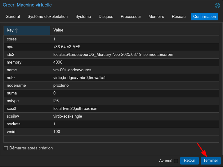 Redémarage à la fin de l’installation et accès lien https://192.168.0.215:8006