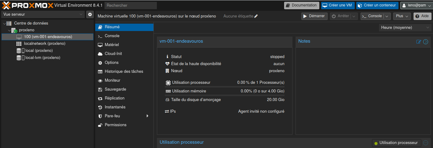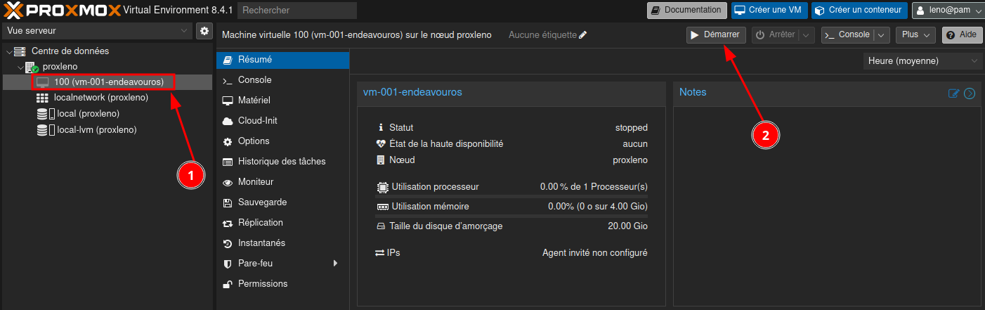 Ainsi, nous arrêtons la machine virtuelle à partir du nœud. Pour arrêter la VM, il faut d’abord trouver le VMID.