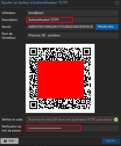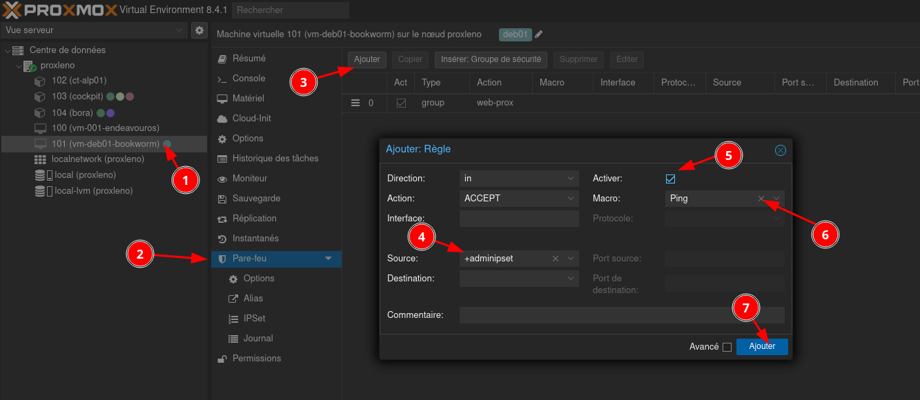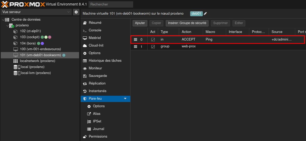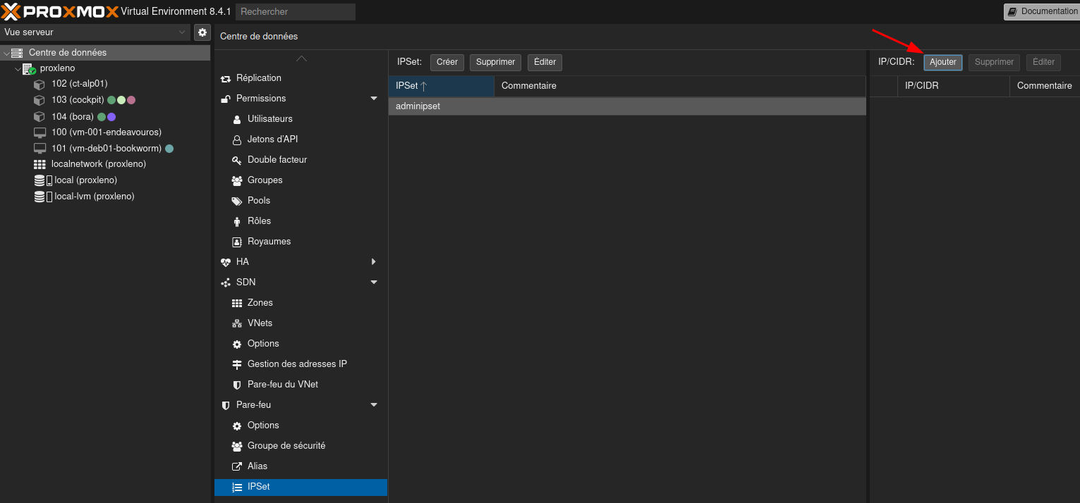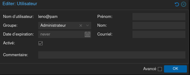 Cette commande permet d’ajouter l’utilisateur à la base d’authentification proxmox