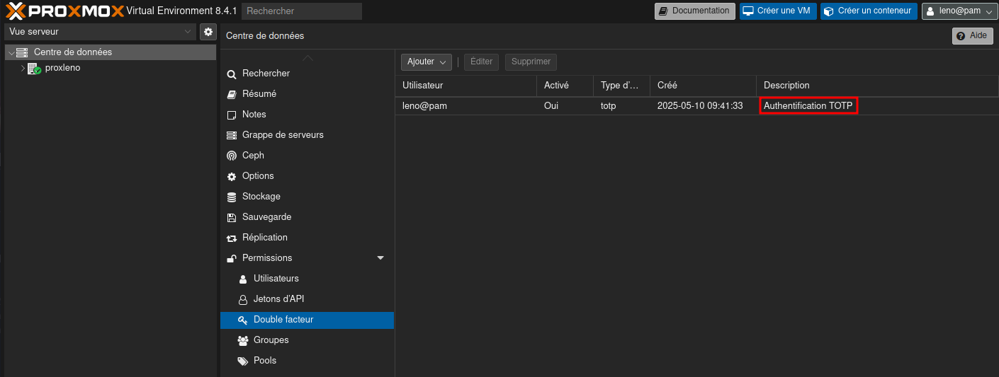 Créé s’il n’existe pas déjà l’utilisateur leno sur votre serveur