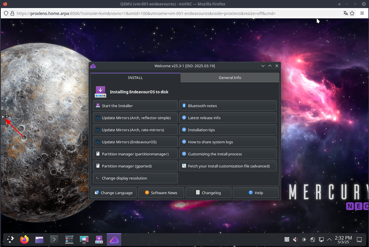 Redémarage à la fin de l’installation et accès lien https://192.168.0.215:8006