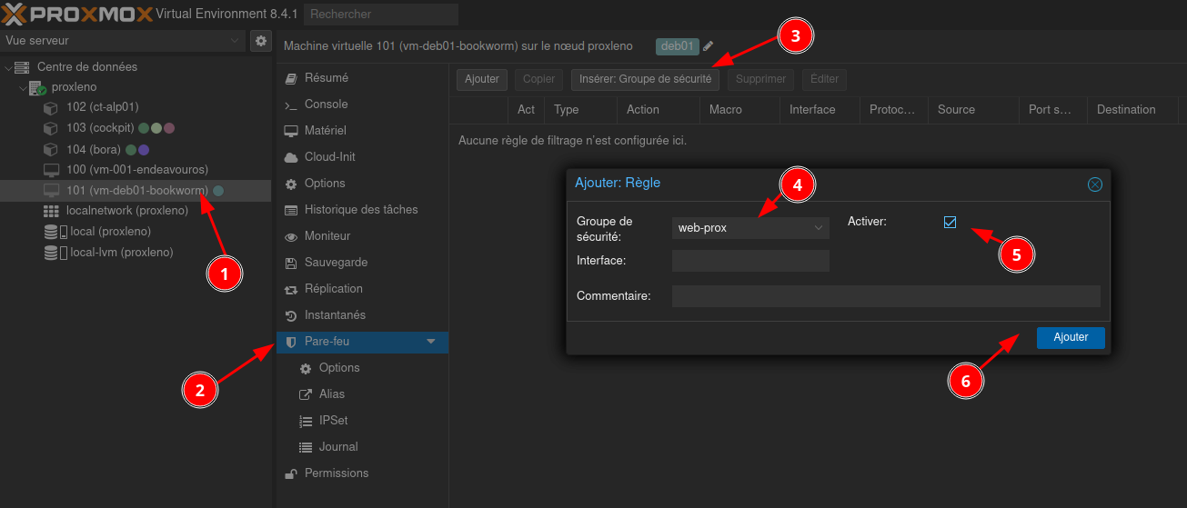 Cette commande permet d’ajouter l’utilisateur à la base d’authentification proxmox