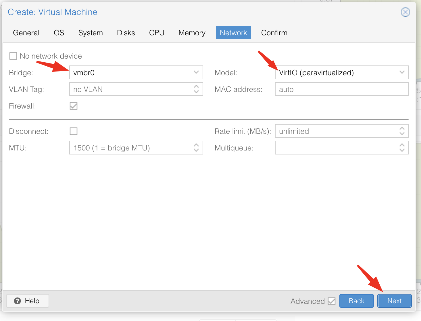 Ces paramètres permettent à Proxmox d’optimiser les pilotes virtuels et la gestion des ressources pour cette distribution.