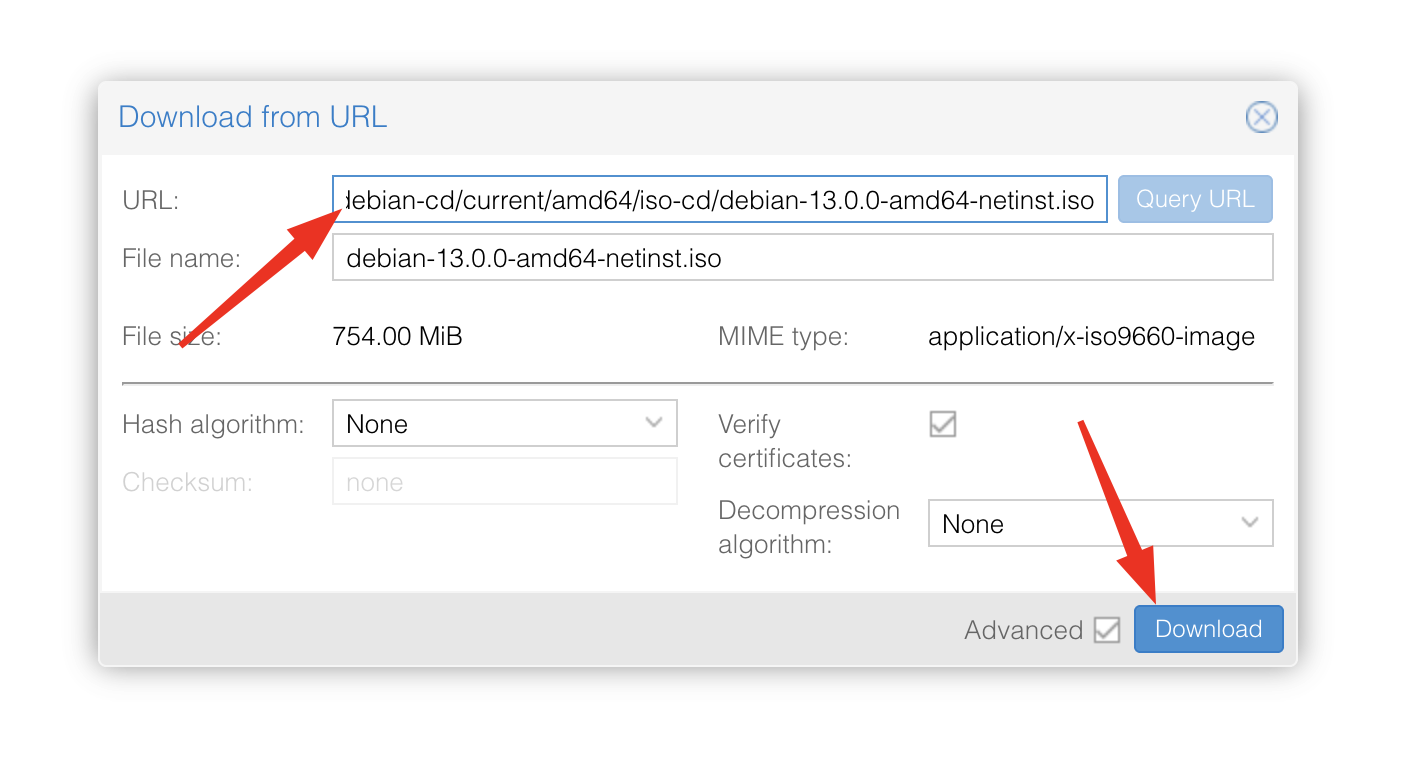 Download from URL pour importer l’image ISO