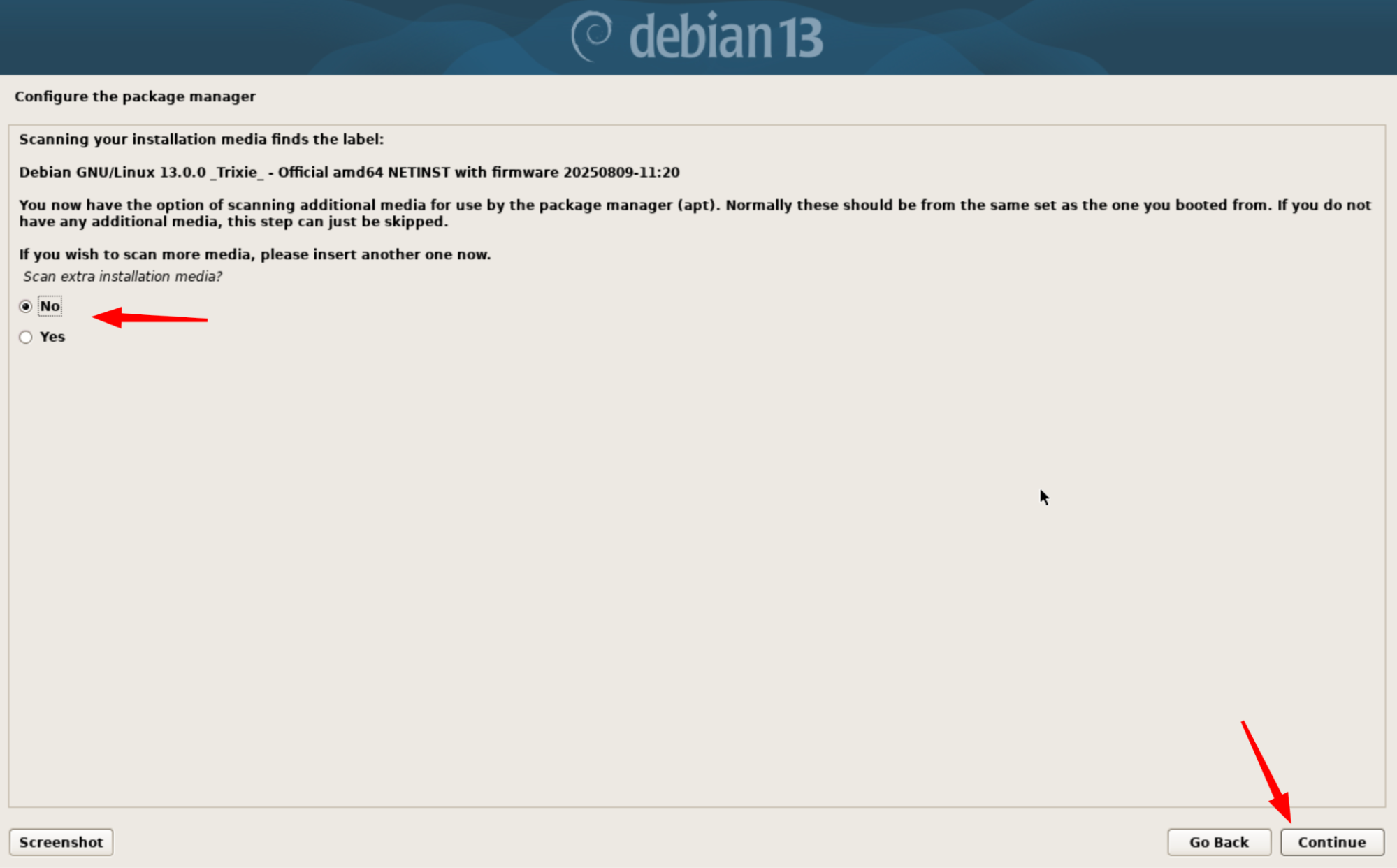 Sélectionnez “No”,