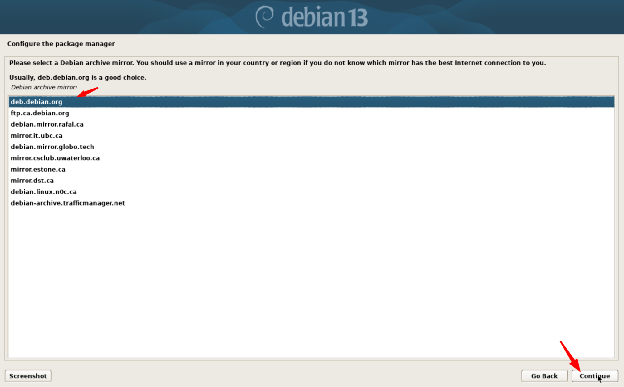 Choix du miroir Debian